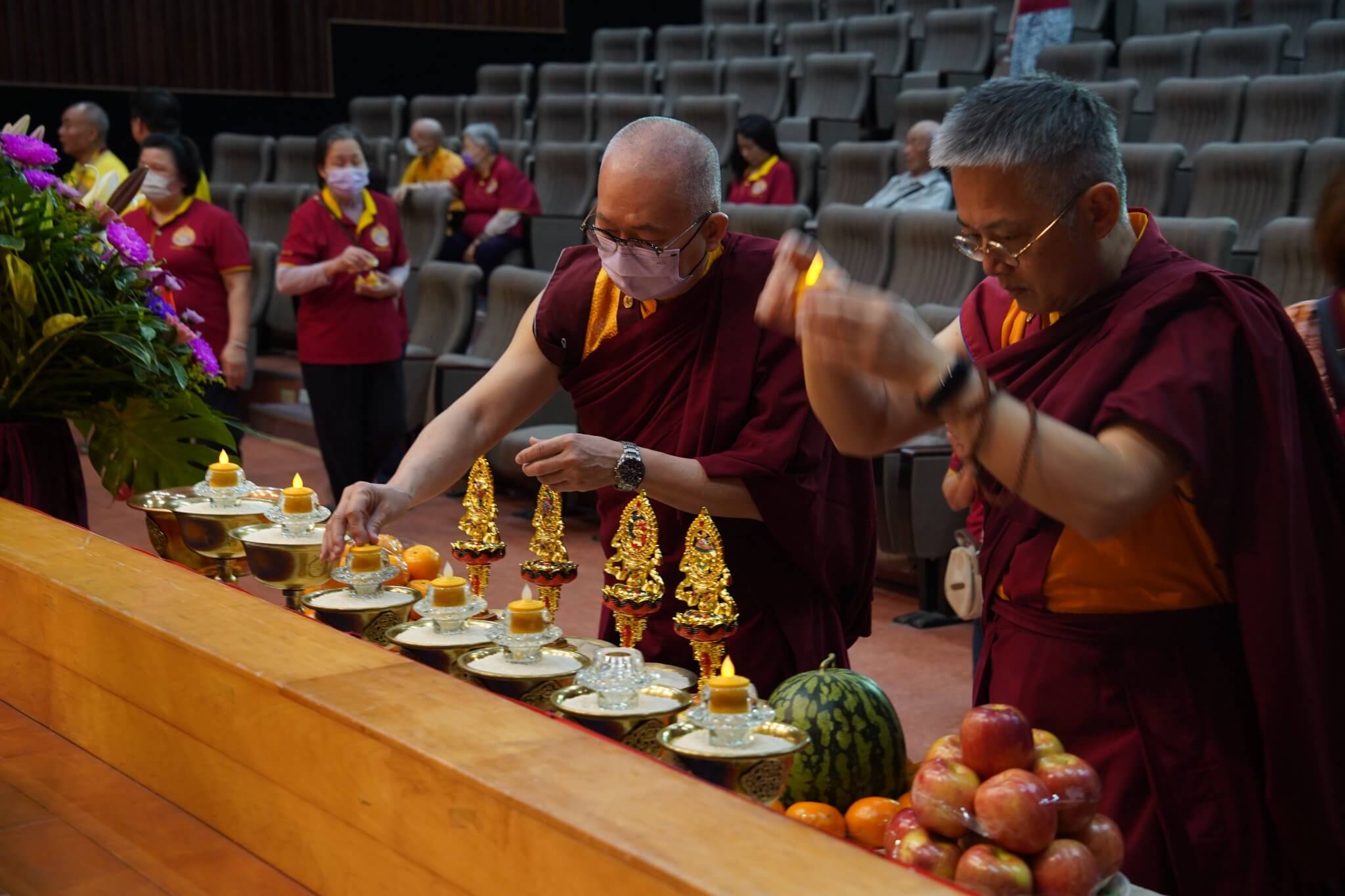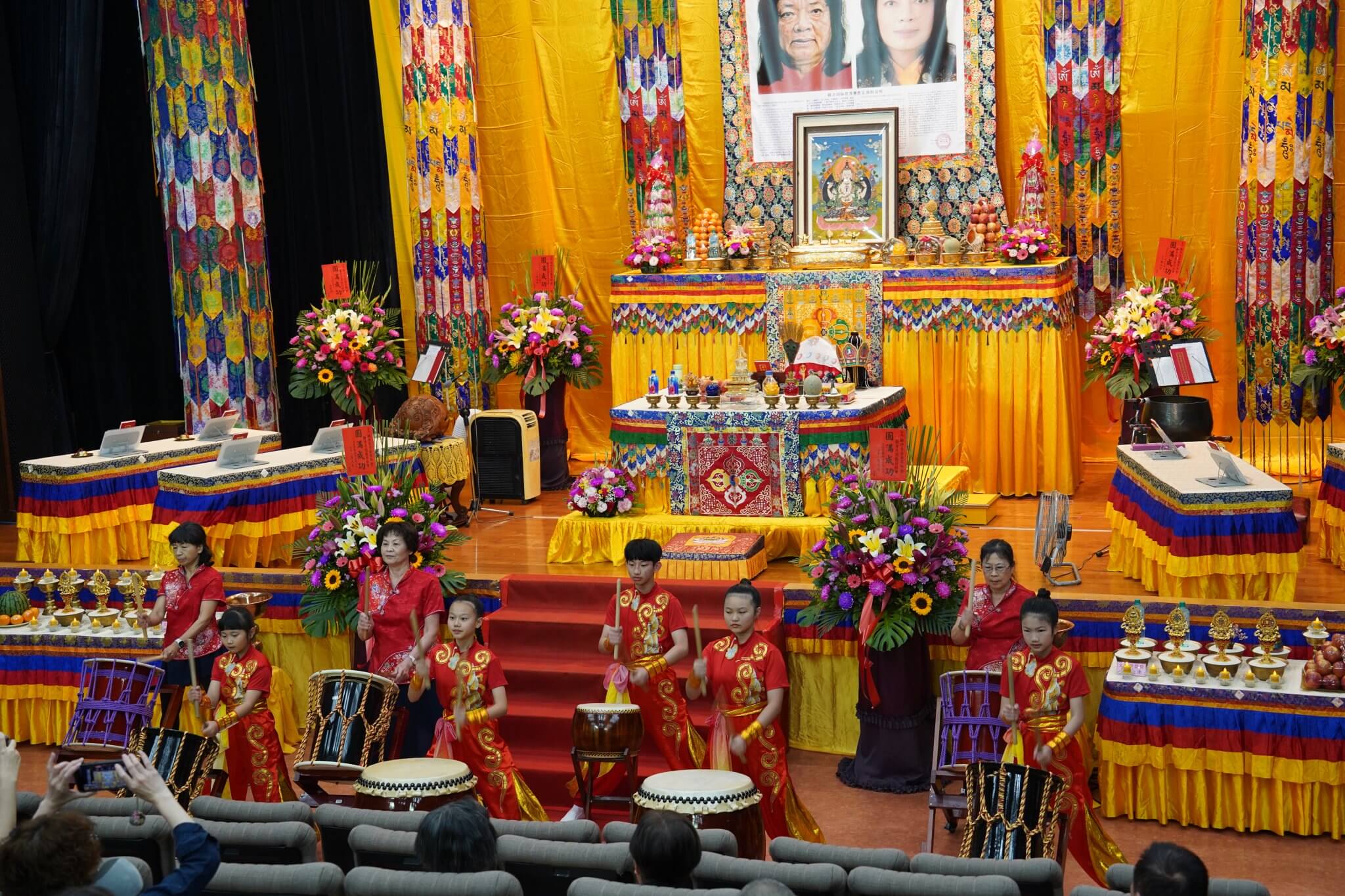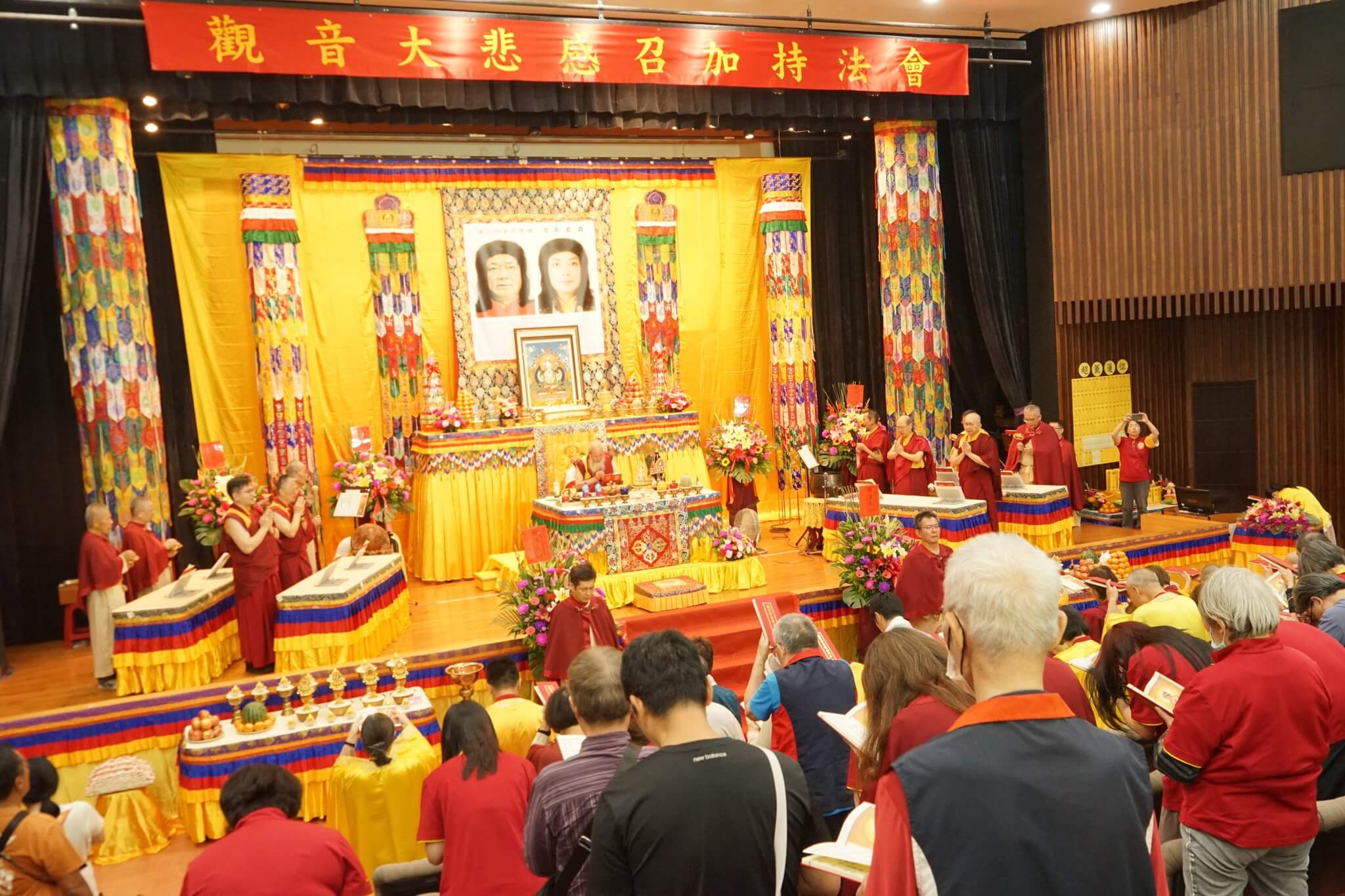 本會恭請在嘉義轉世的 庫頓尊哲雍仲尊者第五世 恆性嘉措大仁波且親臨主法,上午恭誦《觀世音菩薩普門品》,下午《觀音大悲感召加持法會》,觀音大悲加持法是觀音大悲心積聚之力,此法是 南無第三世多杰羌佛用來幫助及加持眾生所傳的法,藉此傳承力感召 觀世音菩薩親臨現場,仰仗觀世音菩薩威神之力,加持與會所有信眾消災除障,宿疾頓消,福慧增長。法會上邀請到嘉義縣外婆橋教育關懷協會、鼓點音樂藝術團、貝拉佛朗明哥舞蹈團及郭帛紘樂藝供佛,以優美的泰國傳統舞蹈、動人的音樂公益演出,獲得全場信眾的掌聲!
